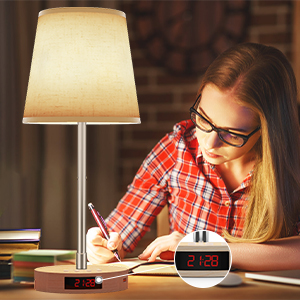 Aiscool Bedside Table Lamp With Clock And Adjustable Stand Stepless Dimmable Led Nightstand Lamp With Usb Type C Ports Desk Lamp With Wood Base For Living Room Bedroom Work Touch Control Amazon Com